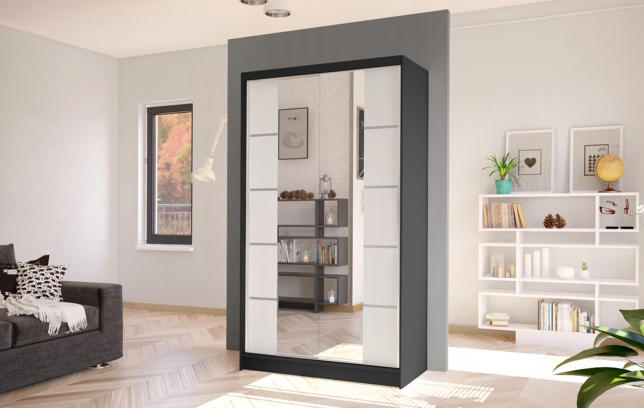 Korpus i dveře jsou vyrobeny z odolné 16 mm laminované desky s ABS hranami, které zajišťují dlouhou životnost. Posuvné dveře se hladce pohybují po hliníkových vodicích lištách. Skříň je dostupná v několika atraktivních barevných provedeních, takže ji snadno sladíte s ostatním nábytkem.