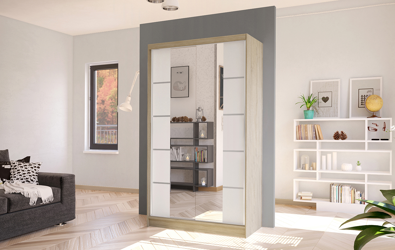 Korpus i dveře jsou vyrobeny z odolné 16 mm laminované desky s ABS hranami, které zajišťují dlouhou životnost. Posuvné dveře se hladce pohybují po hliníkových vodicích lištách. Skříň je dostupná v několika atraktivních barevných provedeních, takže ji snadno sladíte s ostatním nábytkem.