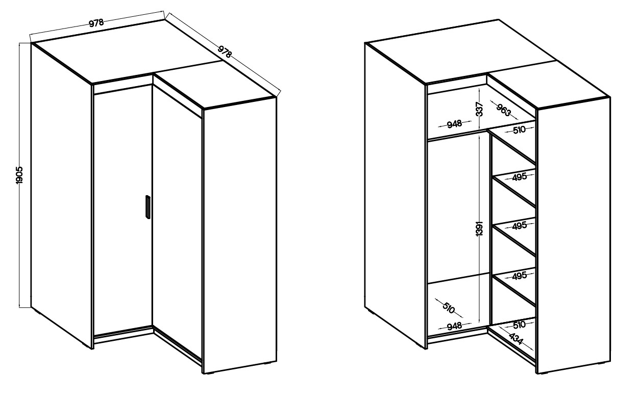 Dotaz na produkt Na splátky ještě dnesRohová šatní skříň Enja je vyrobena z kvalitního lamina tl.15 mm, které je odolné a snadné na údržbu. Vnitřní uspořádání skříně je praktické a poskytuje dostatek úložného prostoru. Své uplatnění najde v ložnici, předsíni i v dětském pokoji. Ke skříni lze dokoupit nádstavec. Skříň je dodávaná v demontu a nabízíme ji ve několika barevných provedeních. Součástí balení je montážní plánek včetně všech potřebných spojovacích materiálů.