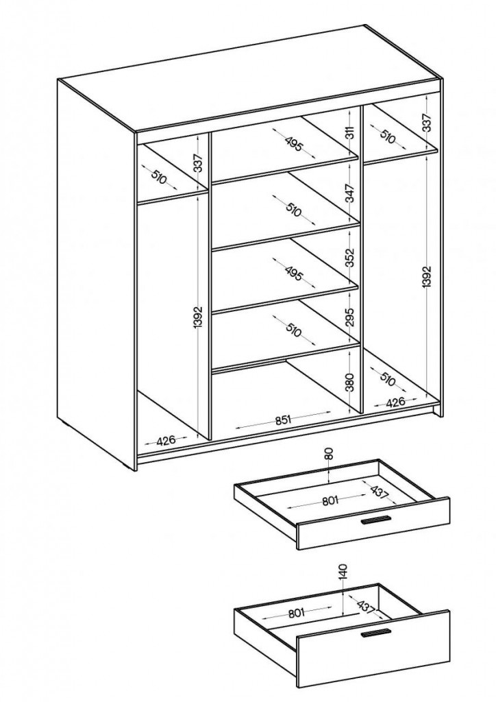 Dotaz na produkt Na splátky ještě dnesŠatní skříň Enja se zrcadlem je vyrobena z kvalitního lamina tl.15 mm, které je odolné a snadné na údržbu. Vnitřní uspořádání skříně je praktické a poskytuje dostatekúložného prostoru. Své uplatnění najde v ložnici, předsíni i v dětském pokoji. Ke skříni lze dokoupit nádstavec. Skříň je dodávaná v demontu a nabízíme ji ve několika barevných provedeních. Součástí balení je montážní plánek včetně všech potřebných spojovacích materiálů.