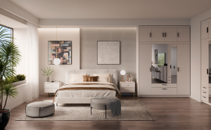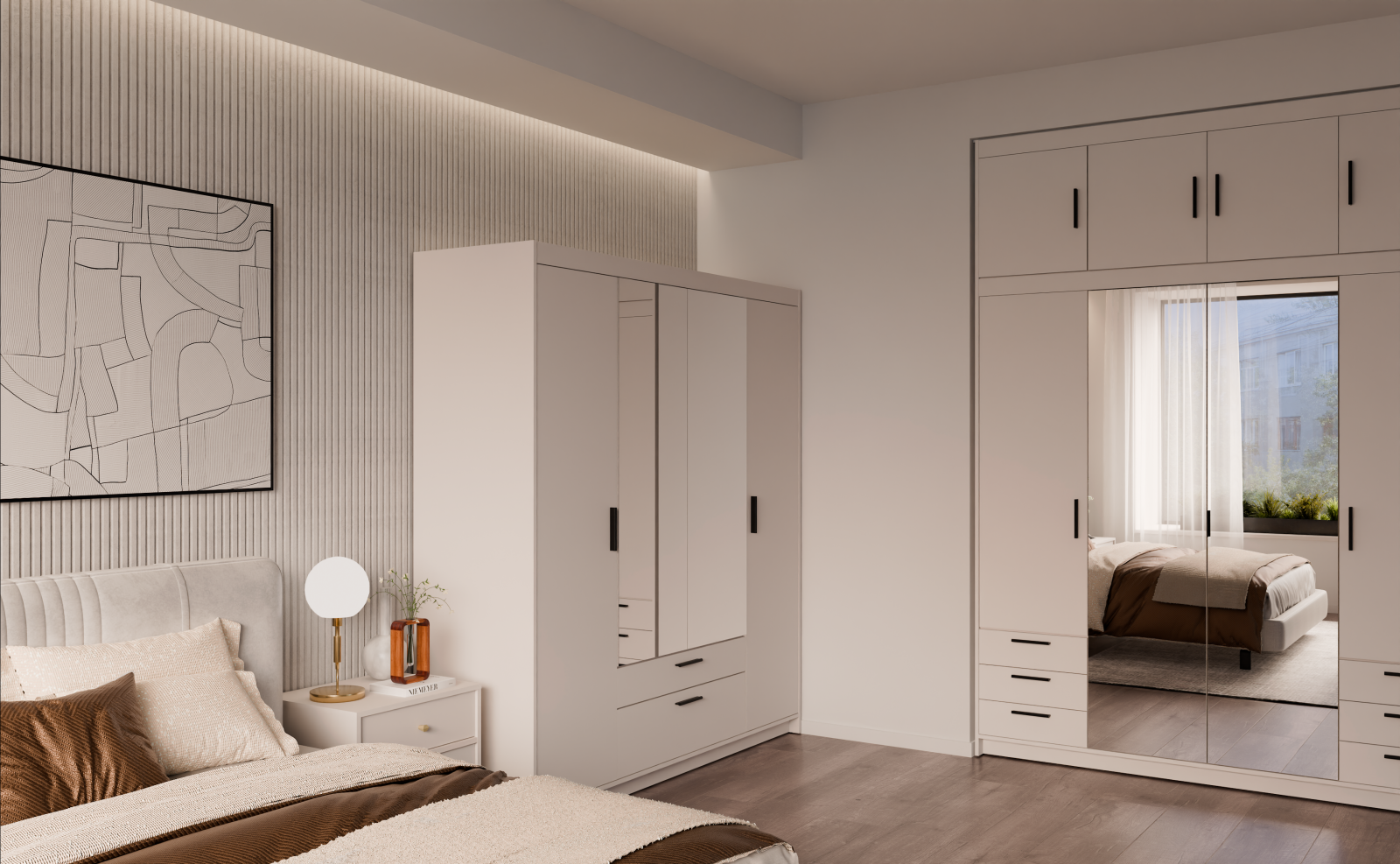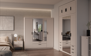 ÚvodNábytekSkříně a komodyŠatní skříněSkříň Enja 4D2S se zrcadlem písková béžová