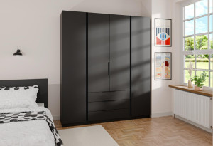Korpus i dveře jsou vyrobeny z odolné 16 mm laminované desky s ABS hranami, které zajišťují dlouhou životnost. Součástí je také černá kovová úchytka a kvalitní spodní pojezdy s tichým dovíráním a výsuvem 3/4 typu QUADRO, které umožňují plynulý a tichý chod zásuvek. Skříň je dostupná v několika atraktivních barevných provedeních, takže ji snadno sladíte s ostatním nábytkem.