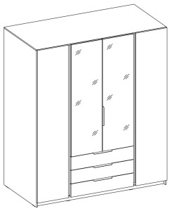 Šatní skříň Keny III v moderním designu má šířku 200 cm a je rozdělena na tři praktické části. Vnitřní uspořádání kombinuje závěsnou tyč, 11 polic a 3 šuplíky, což umožňuje přehledné a praktické rozdělení šatníku.