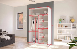 Dotaz na produkt Na splátky ještě dnesŠatní skříň Kosta VI v moderním designu má šířku 100 cm a je rozdělena na dvě praktické části. Posuvné dveře šetří místo a usnadňují přístup do interiéru. Vnitřní uspořádání kombinuje závěsnou tyč a čtyři police, což umožňuje přehledné a praktické rozdělení šatníku.