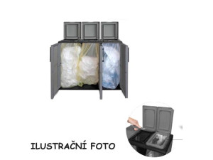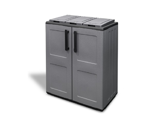 Skříňka na tříděný odpad, 2x dvířka + 3x víko,řada FREE ECO - kvalitní recyklovatelný polypropylen, rozměr 68 x 37 x 84 cm, odolnost vůči povětrnostním vlivům a teplotním změnám, ocelové panty, stabilní a kompaktní konstrukce,