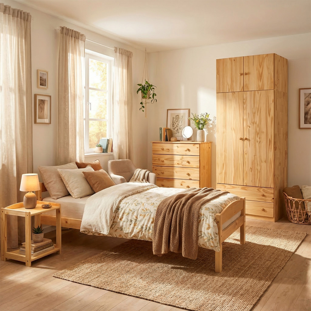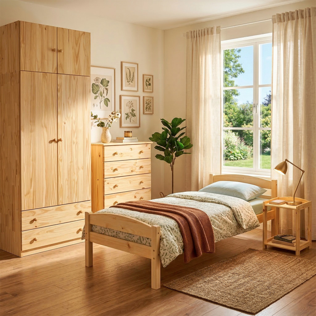 materiál masiv borovice, lakované provedení šatní skříň vybavená šatní tyčí dvě široké zásuvky s kovovými pojezdy doporučený nástavec 811