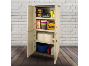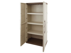 Plastová zahradní / balkonováskříň - 70 x 39 x 165 cm - série Linea Steel.Velmi praktická skříň s vysokou odolností proti mechanickému poškození a odolností proti povětrnostním vlivům, usnadňující udržování pořádku na zahradě na balkóně či terase.