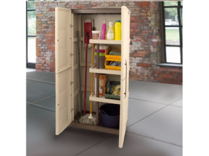 Dotaz na produkt Na splátky ještě dnesSkříň s držáky na košťata na jedné straně, s policemi na druhé - děloené vnitřní uspořádaní.