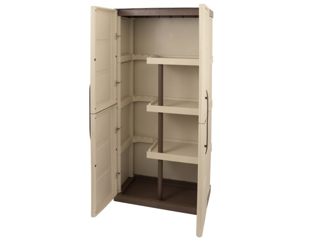 Plastová zahradní / balkonováskříň - 70 x 39 x 165 cm - série Linea Steel.Velmi praktická skříň s vysokou odolností proti mechanickému poškození a odolností proti povětrnostním vlivům, usnadňující udržování pořádku na zahradě na balkóně či terase.