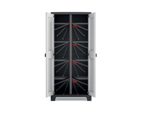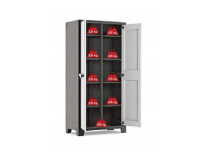 Plastová voděodolná skříň má rozměry 44 x 80 x 182 cm. Dvoukřídlé dveře jsou vybaveny očkem pro připevnění zámku. Osm variabilních polic umožňuje přizpůsobit úložný prostor vašim potřebám. Výškově nastavitelné nohy umožní umístit skříň i do nerovného terénu.