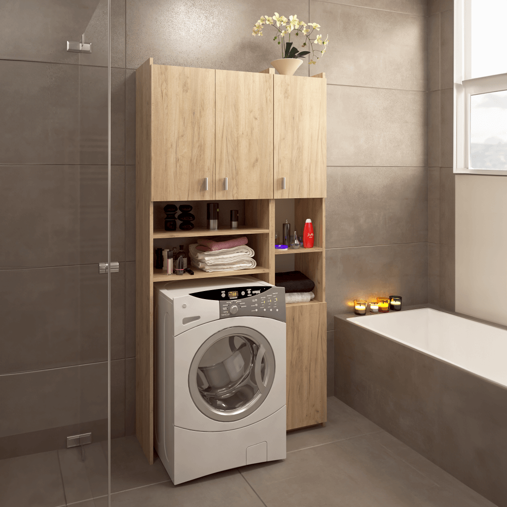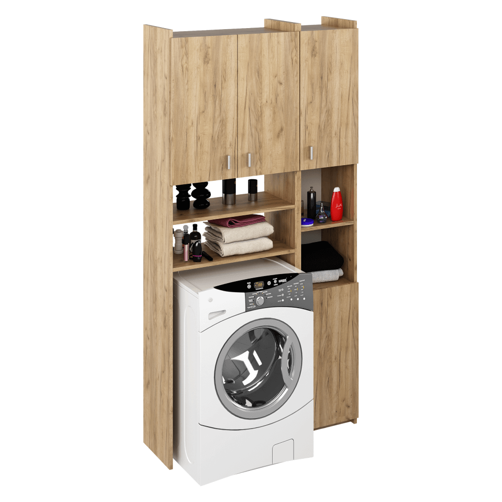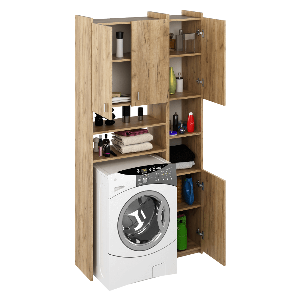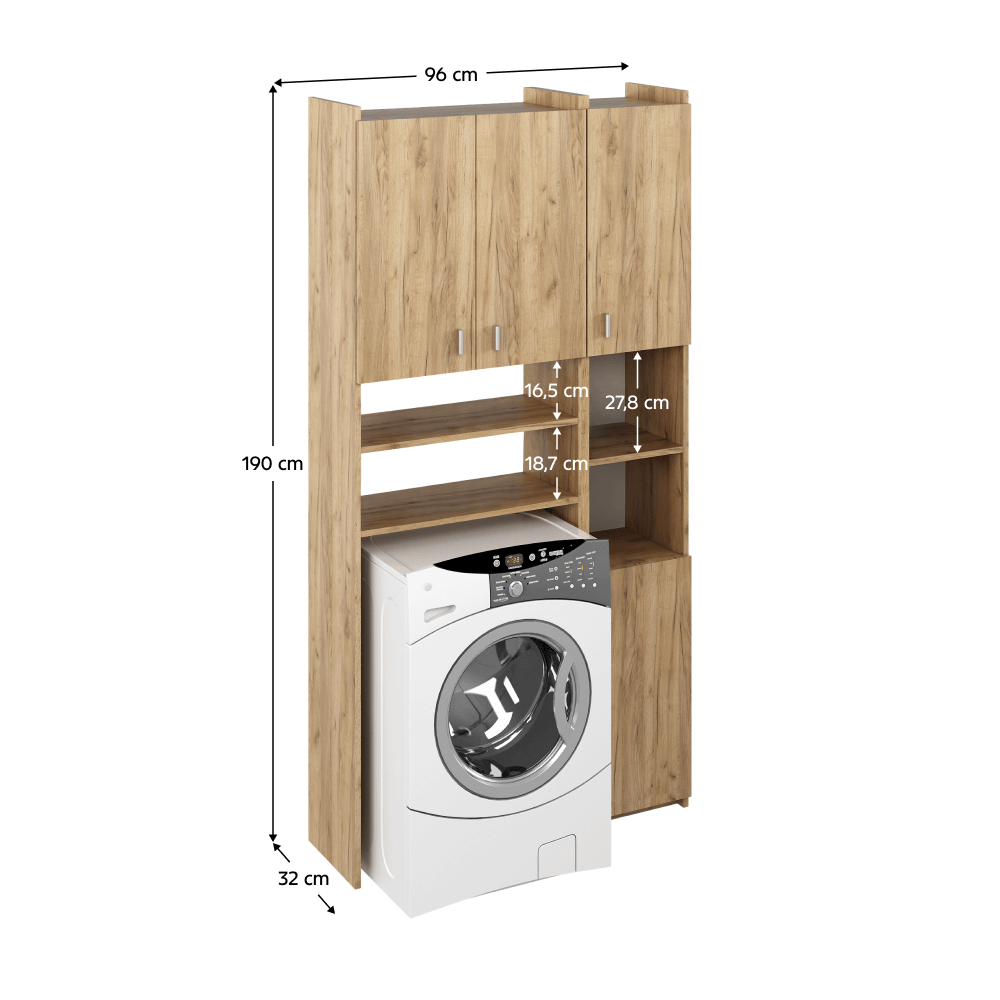 Materiál: laminovaná DTD • Barva: dub artisan • Rozměry (ŠxHxV): 96x32x190 cm • Rozměr pro pračku (ŠxHxV): 60,8x32x85 cm • Tloušťka materiálu: 1,6 cm • Otevřený úložný prostor • S policemi • Nosnost na polici: 5...