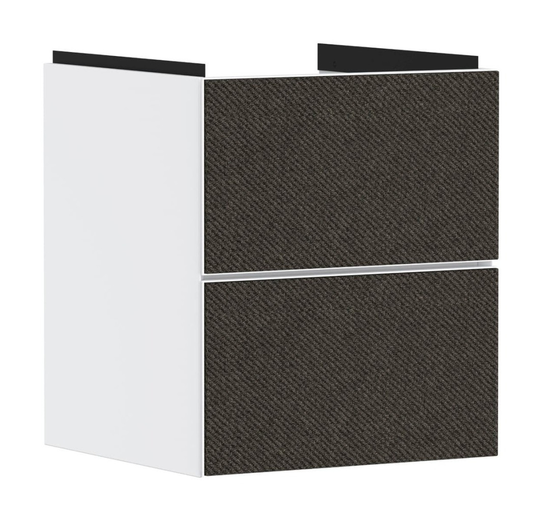 PARAMETRY:Balení: 1 ksHmotnost balení: 32,961  kgDruh výrobku: skříňka pod umyvadlo Barva popisná: matná bílá/textilní tmavá šedá Barva základní: bílá Výbava: plnovýsuv Povrch: MDF Typ: bez...