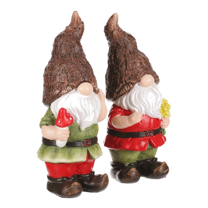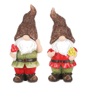 Dotaz na produktOživte svou zahradu, nebo jiný vhodný prostor našimi malebnými skřítky. Tyto figurky, vyrobené z magneziové keramiky, představují dva různé druhy skřítků v barvách podzimu, červeném a zeleném oblečení, a mají čepky imitující dřevěnou kůru. Vypadají, jako by se zrovna vrátili z procházky po lesích a loukách. Jeden z těchto skřítků drží v ruce červenou mochomůrku, druhý zase svazek žlutých květin, což dodává jejich postavám na jedinčnosti. Tyto dekorace jsou dokonalým způsobem, jak přinést do vaší zahrady svěží prvek, který prostor dokonale rozveselí. S jejich výrazným designem a pestrými barvami budou tito skřítkové nepřehlédnutelnými ozdobami.