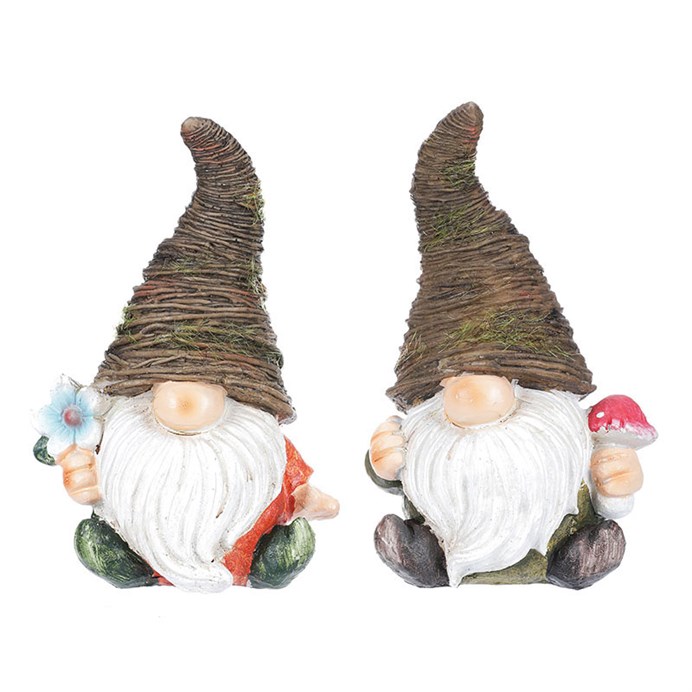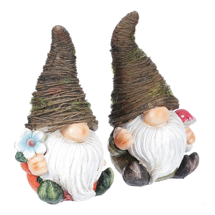 Dotaz na produktFigurky skřítků z polyresinu mají zcela unikátní vzhled s huňatými vousy a špičatými čepicemi, které imitují spletené proutí. Každý z nich přináší do vašeho exteriéru jedinečný výraz a přirozený půvab. Tyto dvě postavičky jsou jako z pohádky a budou centrem pozornosti ve vaší zahradě. Jeden z nich drží květinu a druhý skřítek má v ruce mochomůrku, což přináší do zahrady nádech lesní svěžesti a romantiky. Tyto dekorace jsou nejen krásným ozdobným prvkem, ale také výrazným doplňkem, který dodá vaší zahradě jedinečný charakter.