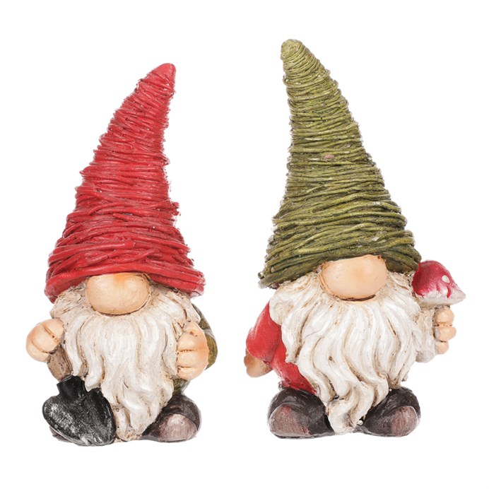 Dotaz na produktFigurka skřítka je vyrobena z polyresinu a nabízí dekorativní mix dvou variant s barevnými detaily. Každý skřítek má výrazný vysoký klobouk v červené nebo zelené barvě, bílý vousatý plnovous a výrazné ruce držící zahradní náčiní nebo houbu. Detailní zpracování povrchu klobouku i vousů přispívá k autentickému vzhledu. Skřítek je vhodný pro umístění v interiéru i exteriéru jako originální doplněk zahrady, terasy či domova.