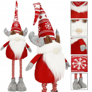 Plyšová dekorace vánočního skřítka na teleskopických nohách. Plynule nastavitelná výška 60 až 80 cm. Stojící pozice, stabilní základna se spojenými botami, vysoká pletená čepice, slušivý obleček, sobí parohy, kvalitní a na dotek příjemný materiál. Překrásná vánoční dekorace, která se stane ozdobou každého interiéru.