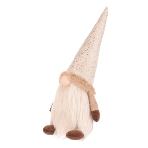 Dotaz na produktRoztomilý látkový skřítek v béžovo-hnědém teplém oblečení vnese do vašeho domova veselou a hřejivou atmosféru. Jeho bílé huňaté vousy, špičatá čepice s bambulí a celkově příjemný vzhled zútulní každý interiér. Tato látková figurka, hebká na dotek, se skvěle hodí jako dekorace na poličku, stůl nebo ji můžete umístit i na pohovku nebo gauč, kde vám bude dělat hravou společnosti.