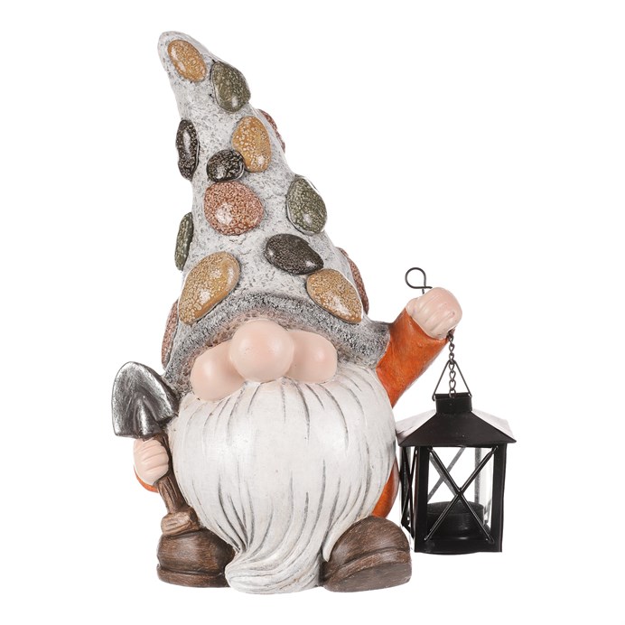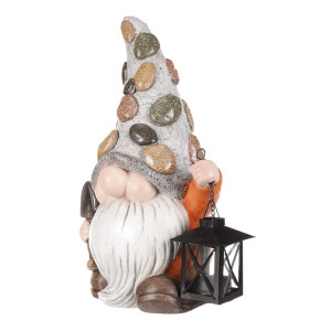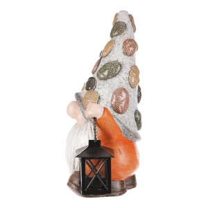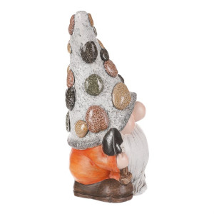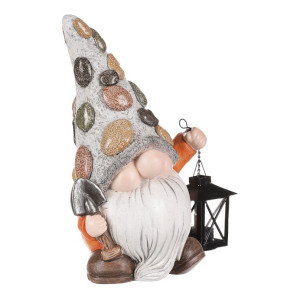 Dotaz na produktTato dekorační figurka představuje roztomilého skřítka vyrobeného z magneziové keramiky. Jeho bílé vousy a špičatá šedá čepice imitující kámen s ozdobnými barevnými oblázky dodávají postavičce jedinečný a hravý vzhled. V jedné ruce drží lopatku a v druhé lucernu, jako by se zrovna chystal fárat v dolech. Lucerna je uzpůsobena pro vložení svíčky, čímž získáte možnost docílit neodolatelného světelného efektu. Jediným viditelným prvkem z obličeje je jeho nos, což dodává této figurce humorný a tajemný výraz. Tato postavička skřítka je nádherným doplňkem pro vaši zahradu, terasu nebo interiér a určitě přiláká pozornost všech, kdo ji uvidí.