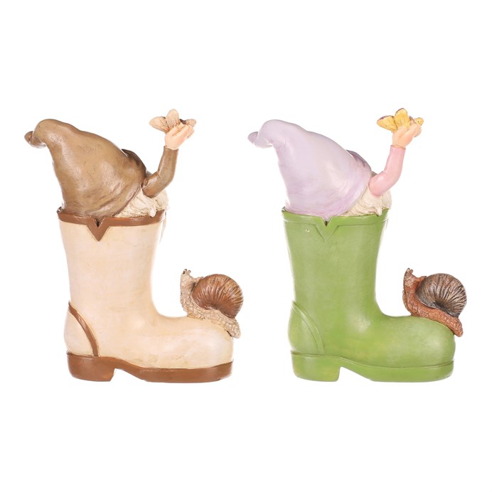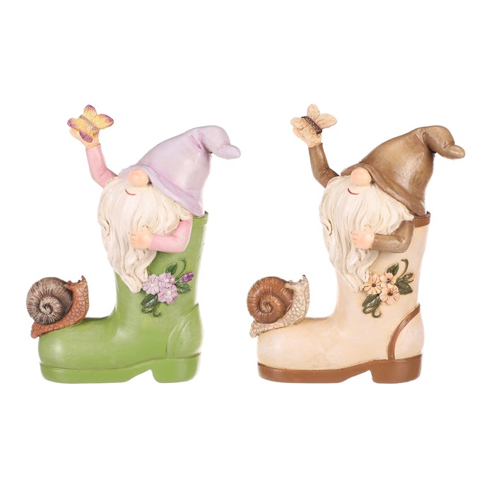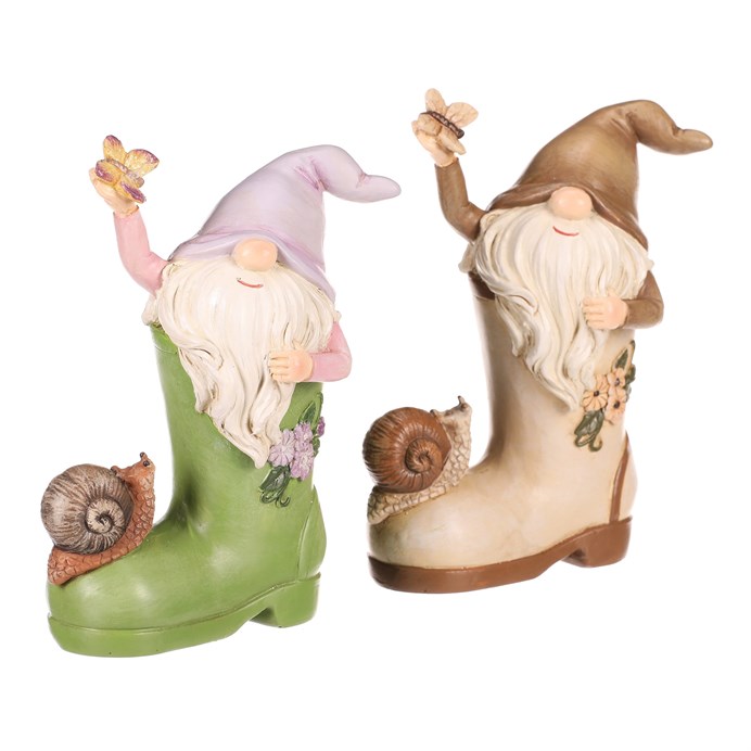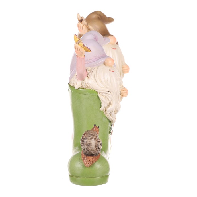 Dotaz na produktOriginální dekorace v podobě skřítka v holínkách (zelených nebo béžových), po kterých navíc leze šnek, je perfektní ozdobou do zahrady, terasy či na balkón. Každá figurka drží roztomilého motýlka a má huňatý vous, což jí dodává jedinečný šarm. Přineste si kousek kouzelné přírody domů a rozveselte svůj venkovní prostor těmito veselými skřítky.