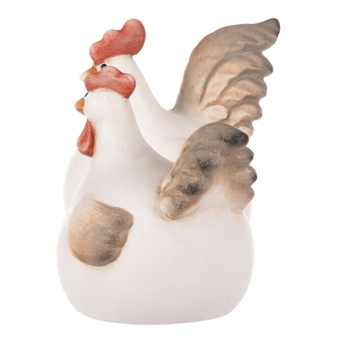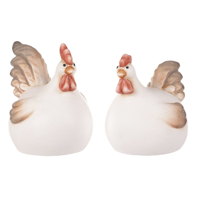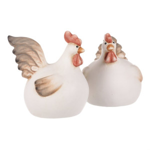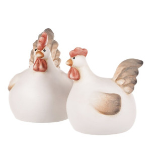 Dotaz na produktTato úžasná keramická dekorace ve formě bílé slepice s kohoutem přináší do vašeho prostoru jedinečnou kombinaci krásy a zábavy. Jejich výraz je neopakovatelný, a to zvláště v důsledku jejich vytřeštěných očí, které jako by jim měly vyskočit z důlků. Tento osobitý detail jim dodává vskutku vtipný vzhled, který zvedne náladu nejen vám, ale i každému, kdo je uvidí. Tyto keramické figurky přinášejí s jarem a Velikonocemi radost a zábavu do vašeho domova. Bílá slepice a kohout jsou jako kouzelníci, kteří svou přítomností všem narýsují úsměv na tvářích. Ať už je umístíte na poličku, stůl nebo kamkoli jinam, stanou se neodolatelným středobodem pozornosti.