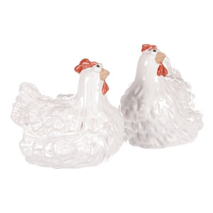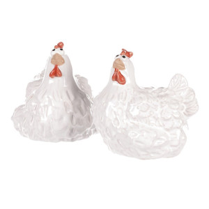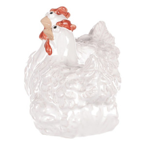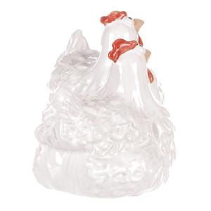 Dotaz na produktKeramická dekorace ve tvaru slepice a kohouta v bílém provedení přináší do interiéru jemný rustikální nádech. Detailně propracované tělo s lesklou glazurou zdůrazňuje texturu peří a výrazné červené detaily na hřebenu a laloku dodávají dekoraci živost. Vhodná pro umístění na poličku, komodu nebo jako součást tematické dekorace. Díky pevnému keramickému materiálu se snadno udržuje a zachovává svůj vzhled po dlouhou dobu.
