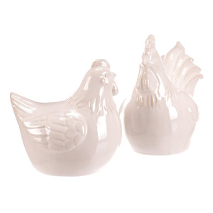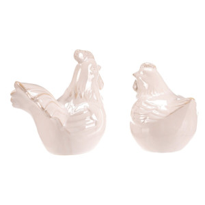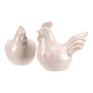 Dotaz na produkt Na splátky ještě dnesKeramická figurka slepice a kohouta v krémovém odstínu představuje dekorativní doplněk vhodný pro různé interiérové styly. Jemné lesklé provedení podtrhuje detaily peří a tvaru, které věrně napodobují charakteristické znaky těchto zvířat. Velikost S umožňuje umístění na poličku, komodu nebo do vitríny, kde přidá přírodní a klidnou atmosféru. Obě figurky jsou samostatné a lze je kombinovat podle potřeby. Jsou určeny pro vnitřní použití jako stylový dekorativní prvek.