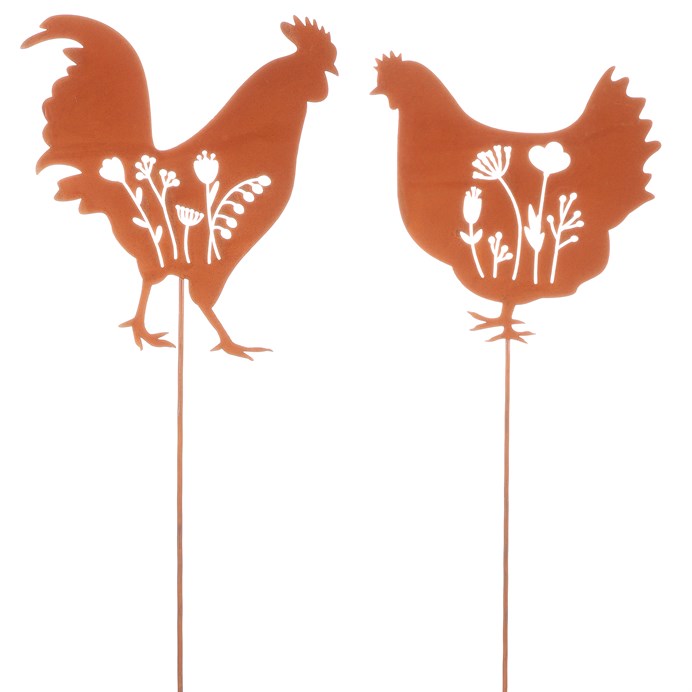 Dotaz na produkt Na splátky ještě dnesSlepice a kohout na zápichu s jemným květinovým designem v rezavé barvě jako pár bude elegantní kovovou dekorací, která přinese do vaší zahrady veselou jarní atmosféru. Tento stylový pár skvěle doplní jakýkoli venkovní prostor a přidá mu nádech tradičního venkovského kouzla.