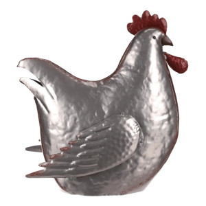 Dotaz na produktTato kovová dekorace v podobě slepice je skutečně netradiční a originální zvířecí ozdobou, která se snadno stane středem pozornosti. Je v kovové až stříbrné barvě a místy doplněna hnědými až narezavělými odstíny. Působí dojmem opotřebeného ozdobného předmětu s dlouhou historií. S celoročním využitím je ideální pro interiéry, kde může vytvořit nádhernou a nápaditou atmosféru. Slepice může působit skvěle sama o sobě, nebo být součástí ucelené kompozice s ostatními figurkami, květinami či nejrůznějšími přízdobami. Hodí se spíše do vnitřních, nebo krytých prostor, kde nebude čelit povětrnostním vlivům.