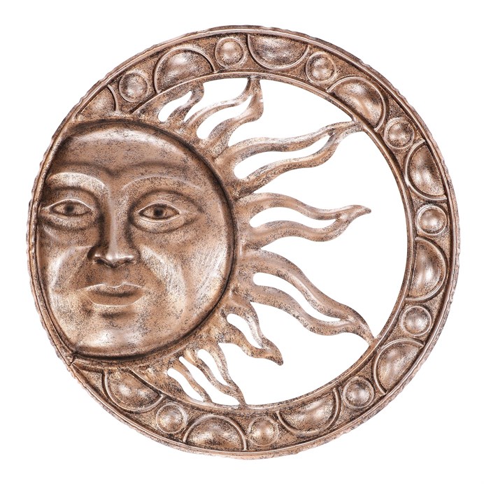 Dotaz na produkt Na splátky ještě dnesTato jedinečná dekorace v kombinaci měděných a stříbrných tónů přináší motiv slunce s obličejem, umístěného na boku kruhu. Elegantní spojení barev a asymetrický design dodají vašemu prostoru originální a příjemnou atmosféru. Skvělý doplněk pro interiéry i venkovní zdi.