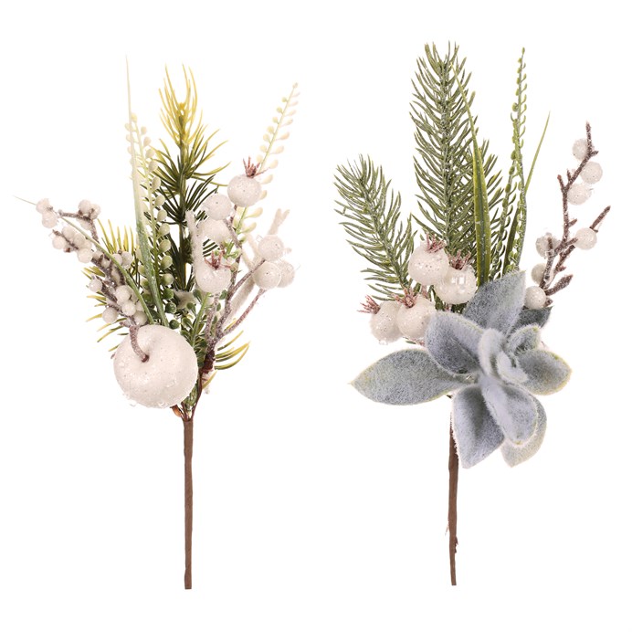 Dotaz na produktVětvička umělá - jehličí, bílé bobule a zeleň, mix 2 druhů, omrznutá, cena za 1 ks.