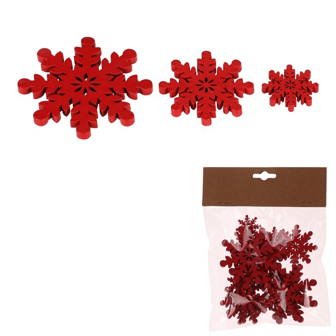 Dotaz na produktNechte naplno proniknout do svých domovů, či jiných oblíbených prostor, tu pravou sváteční atmosféru, i díky dřevěným vánočním ozdobám ve tvaru sněhových vloček. Jsou všechny v červené barvě a balené po 18 kusech v sáčku, kde najdete mix tří různých velikostí. Je už jen na fantazii a dekorativních schopnostech každého z vás, jak s těmito ozdobami naloží. Každopádně jsou výborným základem pro tvorbu různorodých svátečních aranží, dotvářených vlastníma rukama.