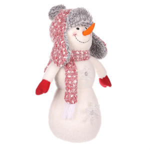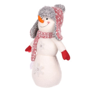Dotaz na produktVeselý látkový sněhulák s LED osvětlením na knoflících, okamžitě přidá do vašeho interiéru pohodu, radost a kouzlo Vánoc. Sněhulák má úsměv od ucha k uchu a jeho typický nos z mrkve z něj dělá postavičku, která rozdává radost všemi směry. Je chytrý, a místo klasického hrnce na hlavě, nosí teplou čepku ve formě beranice, která ho chrání před zimním chladem. Nezapomněl si vzít ani šálu, která mu bude zahřívat jeho ledový krk. Jen jeho nekryté růžové tváře jsou ošlehané mrazem, což nám všem hned připomene, že je opravdu zima. Jeho knoflíky jsou osvíceny LED světélky ve tvaru hvězdiček připomínající sněhové vločky, které dodávají celému prostoru kouzelný světelný efekt. Tento sněhulák je nejen krásnou vánoční ozdobou, ale i skvělým způsobem, jak vytvořit v místnosti pravou vánoční atmosféru.