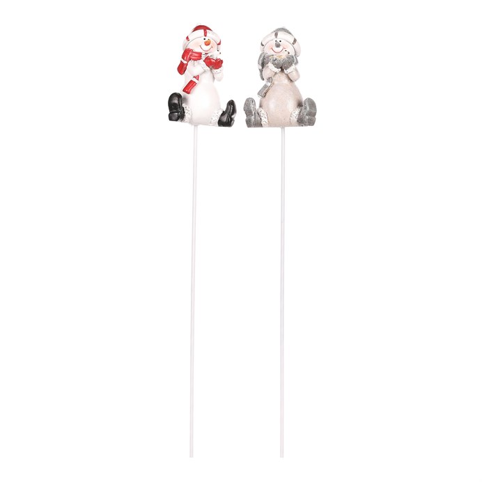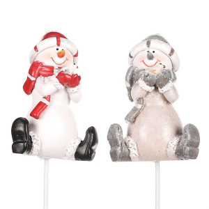 Dotaz na produktDrobné postavičky sněhuláků v mixu 2 druhů na zápichu, jsou tu proto, aby vám vykouzlili radost a úsměv na tváři. Obě dvě figurky se liší zejména odlišným zbarvením šály a čepice, a to buď červeným, nebo šedým. Forma zápichu umožňuje zabodnutí ozdob do polystyrenové desky, věnců nebo i květináčů.