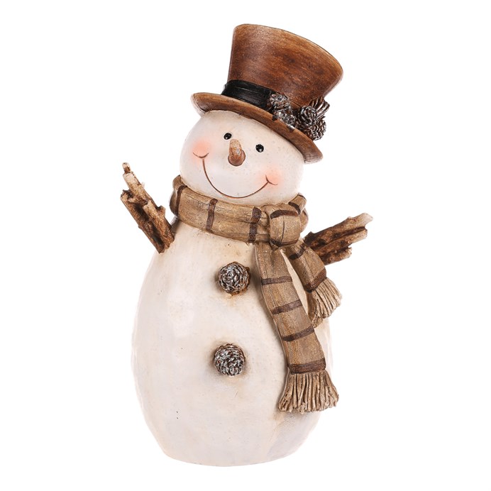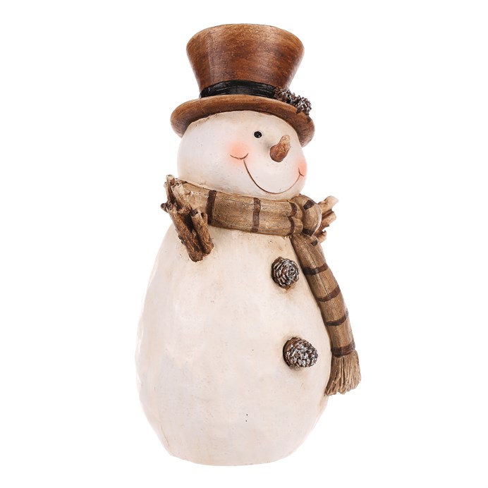 Dotaz na produktUžijte si jedinečné kouzlo zimy a vánočních svátků s touto velkou figurkou usměvavého sněhuláka. Jeho roztomilý výraz doplněný slušivou šálou a elegantním kloboukem dodá vaší výzdobě neodolatelný veselý prvek. Svým provedením a vzhledem, bude tato figurka patřit k nejoriginálnějším ozdobám ve vaší sbírce. Umístěte ji na poličku, stůl, okenní parapet nebo jiné vhodné místo, odkud bude rozdávat radost a potěšení všemi směry.