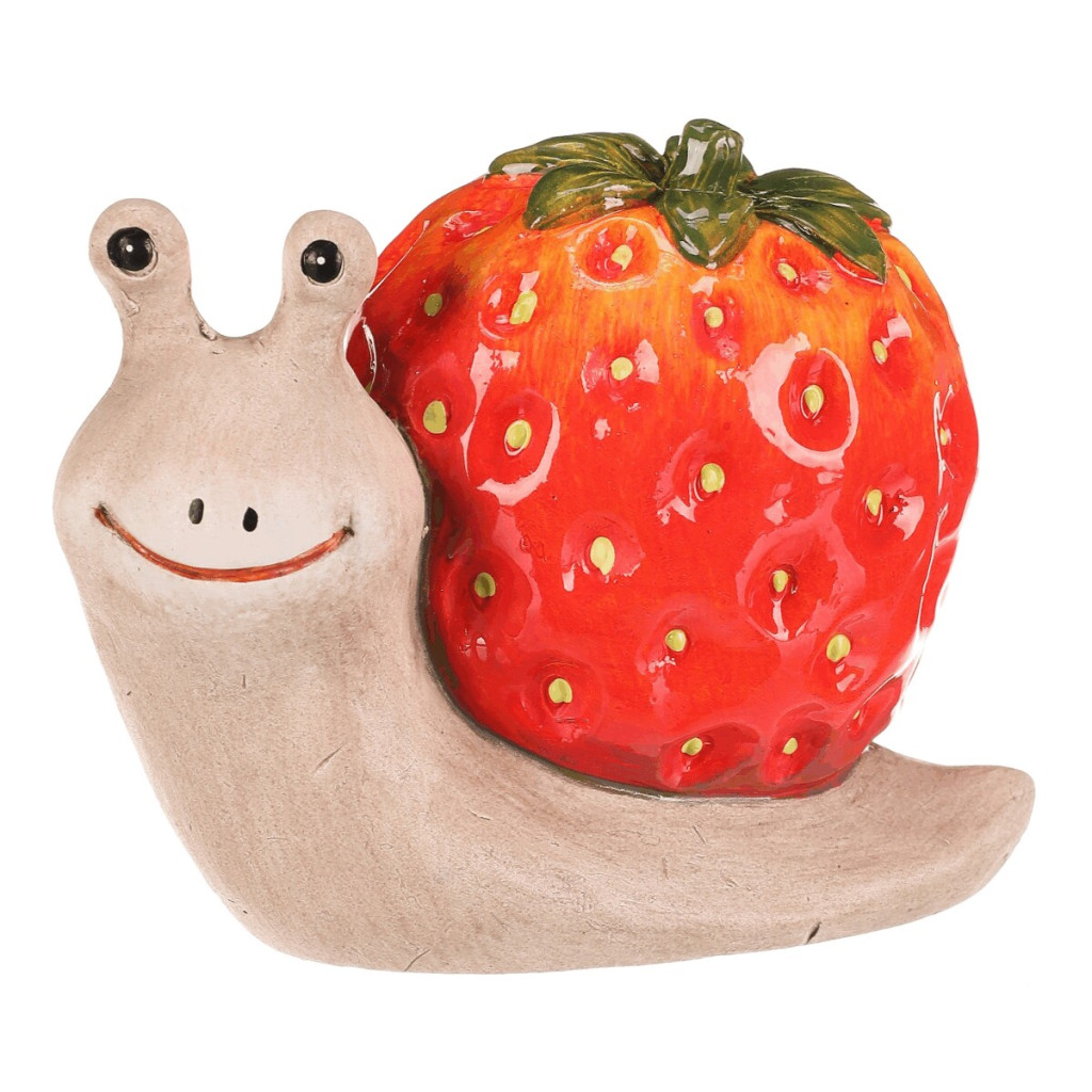 Dotaz na produktKeramická figurka šneka s jasně červeným ulitou ve tvaru jahody přináší hravý a barevný akcent do každého interiéru i zahrady. Krémové tělo šneka je jemně tvarované s výraznými očima a úsměvem, což dodává dekoraci přívětivý výraz. Povrch je glazovaný, což zajišťuje snadnou údržbu a dlouhou životnost. Figurku lze umístit na poličku, parapet nebo do květinového aranžmá jako originální doplněk. Vynikne v kolekci přírodních motivů i samostatně jako poutavý dekorativní prvek.