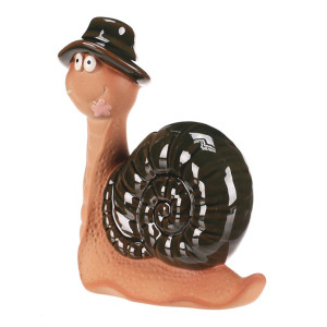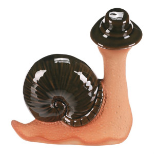 Dotaz na produktKeramická figurka šneka o velikosti L zaujme zelenou ulitou s lesklou glazurou a jemně strukturovaným tělem v přírodních odstínech. Detailní zpracování doplňuje stylový klobouk na hlavě, který dodává dekoraci hravý charakter. Figurku lze pohodlně postavit na rovný povrch, kde vynikne jako originální doplněk interiéru či zahrady. Díky keramickému materiálu se snadno udržuje a je navržena pro dlouhou životnost.