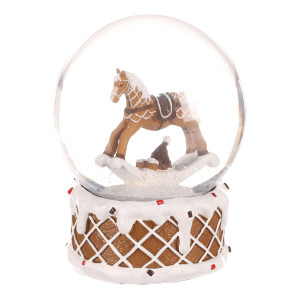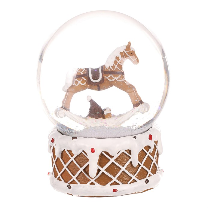 Dotaz na produktZkrášlete si místo na poličce, stole, komodě nebo okenním parapetu tímto nádherným sněžítkem s houpacím koníkem uvnitř kulaté skleněné baňky. Svým provedením věrně napodobuje dekoraci z perníku a sladkostí. Ozdobné předměty tohoto typu jsou charakteristické tím že po zatřesení, vyvoláte uvnitř baňky doslova sněhovou vánici plnou třpytu. Udělejte si radost pořízením této barevné a sladce vyhlížející dekorace, která vám dokonale zpestří vaši sváteční výzdobu.