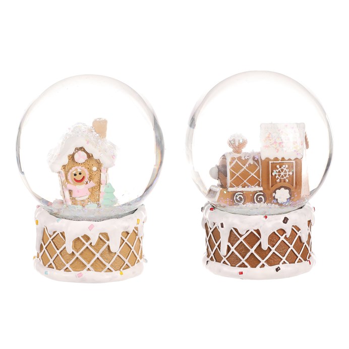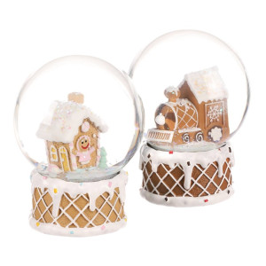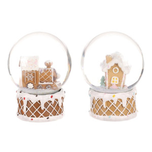 Dotaz na produktOzdobte si o vánočním čase vaši poličku, stůl, okenní parapet a další viditelná místa, tímto nádherným sněžítkem s vláčkem uvnitř kulaté skleněné baňky. Je k dostání ve dvou odlišných provedeních, a to buď s panáčkem a domečkem, nebo vláčkem. V obou případech se jedná o věrné napodobení dekorace z perníku. Tyto ozdobné předměty jsou navíc typické tím, že po zatřesení vyvoláte uvnitř baňky doslova sněhovou vánici plnou třpytu.