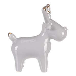 Dotaz na produktTato drobná keramická figurka soba v šedé barvě přináší do vašeho prostoru krásu jednoduchosti a symboliku tuhé severské zimy. Její silueta, ztvárněná v prostém stylu bez detailů, evokuje kouzlo zimního období a nese s sebou význam severského prostředí. Sob je znám jako symbol Vánoc a zimy v mnoha kulturách po celém světě. Ačkoliv je spojen s cizími zeměmi, stále více nachází své místo i v našich končinách, přinášející kousek té krásy a pohody, kterou Vánoce mohou nabídnout. Umístěním této keramické postavičky do vašeho interiéru, na stůl nebo do vitríny, získáte milou drobnost, která vás vtáhne do zimi a svátečních dní.