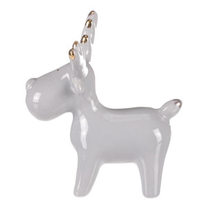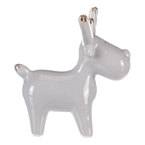 Dotaz na produktTato drobná keramická figurka soba přináší do vašeho prostoru krásu jednoduchosti a symboliku tuhé severské zimy. Její silueta, ztvárněná v prostém stylu bez detailů, evokuje kouzlo zimního období a nese s sebou význam severského prostředí. Sob je znám jako symbol Vánoc a zimy v mnoha kulturách po celém světě. Ačkoliv je spojen s cizími zeměmi, stále více nachází své místo i v našich končinách, přinášející kousek té krásy a pohody, kterou Vánoce mohou nabídnout. Umístěním této keramické postavičky na poličku, stůl nebo do vitríny, získáte milou drobnost, která vás naplno vtáhne do zimy a svátečních dní.