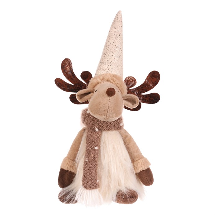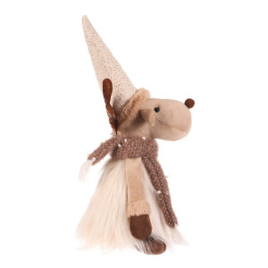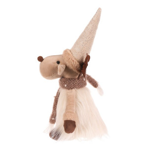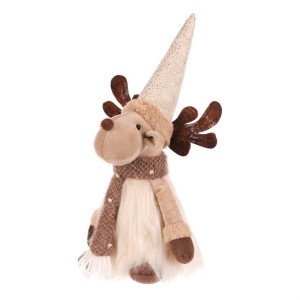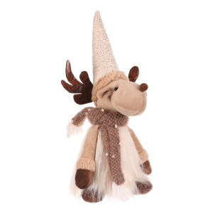 Dotaz na produktLátkový sob v béžovo-hnědém teplém oblečení vnese do vašeho domova veselou a hřejivou atmosféru. Jeho roztomilý obličej, špičatá čepice s bambulí a celkově veselý vzhled zútulní každý interiér. Tato látková figurka, hebká na dotek, se skvěle hodí jako dekorace na poličku, stůl nebo ji můžete umístit i na pohovku nebo gauč, kde bude vaším hravým společníkem.
