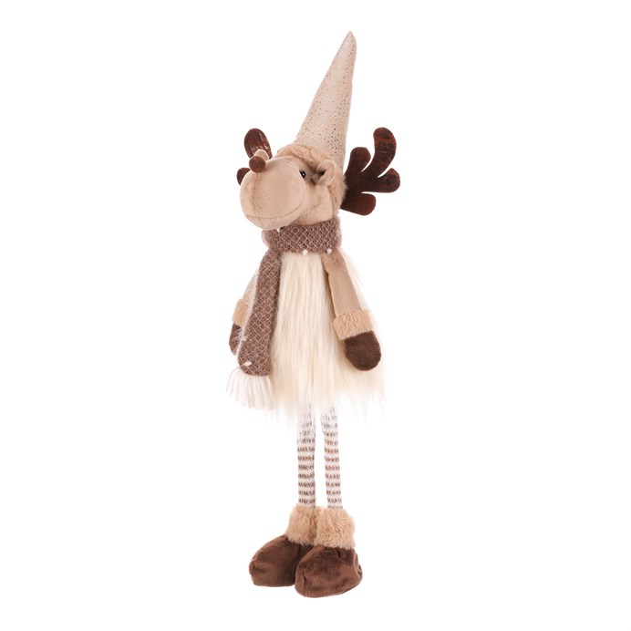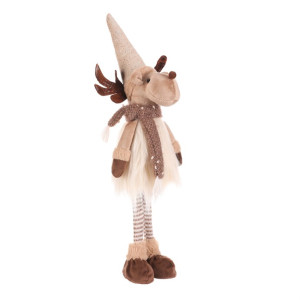 Dotaz na produktLátkový sob v béžovo-hnědém teplém oblečení vnese do vašeho domova veselou a hřejivou atmosféru. Jeho roztomilý obličej, špičatá čepice s bambulí a celkově veselý vzhled zútulní každý interiér. Tato látková figurka, hebká na dotek, se skvěle hodí jako dekorace na poličku, stůl nebo ji můžete umístit i na pohovku nebo gauč, kde bude vaším hravým společníkem.