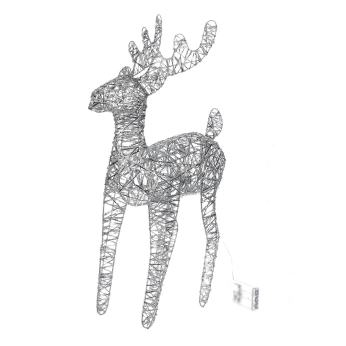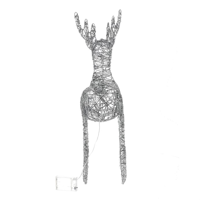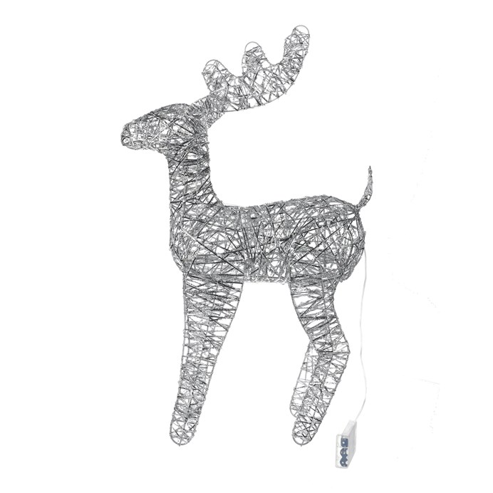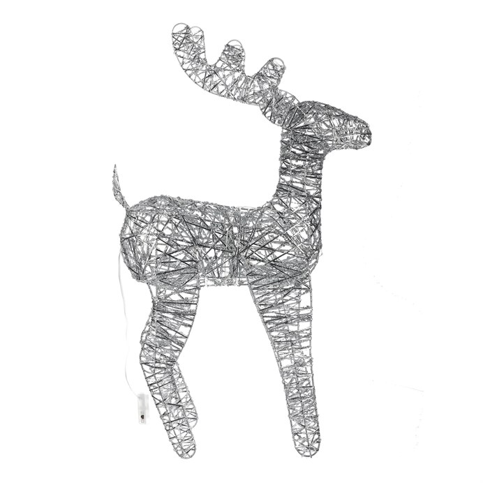 Dotaz na produktOživte svůj domov s naším sobem s LED osvětlením v elegantní stříbrné barvě. Tento jedinečný kus je tvořen spletenými dráty ve tvaru siluety tohoto nádherného zvířete, který přináší do vašeho interiéru dávku světla a atmosféry severské zimy. Ideální jako dekorativní prvek na polici, komodě nebo stolku vedle postele, tento sob dodá prostoru jemný a moderní nádech s možností světelného efektu.