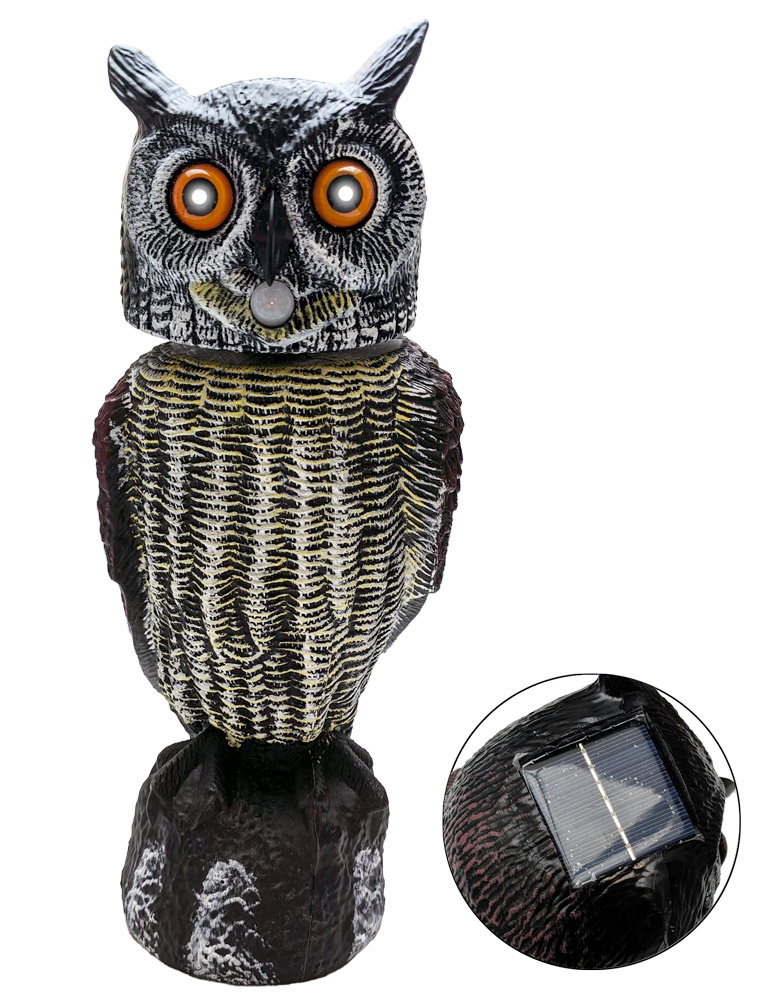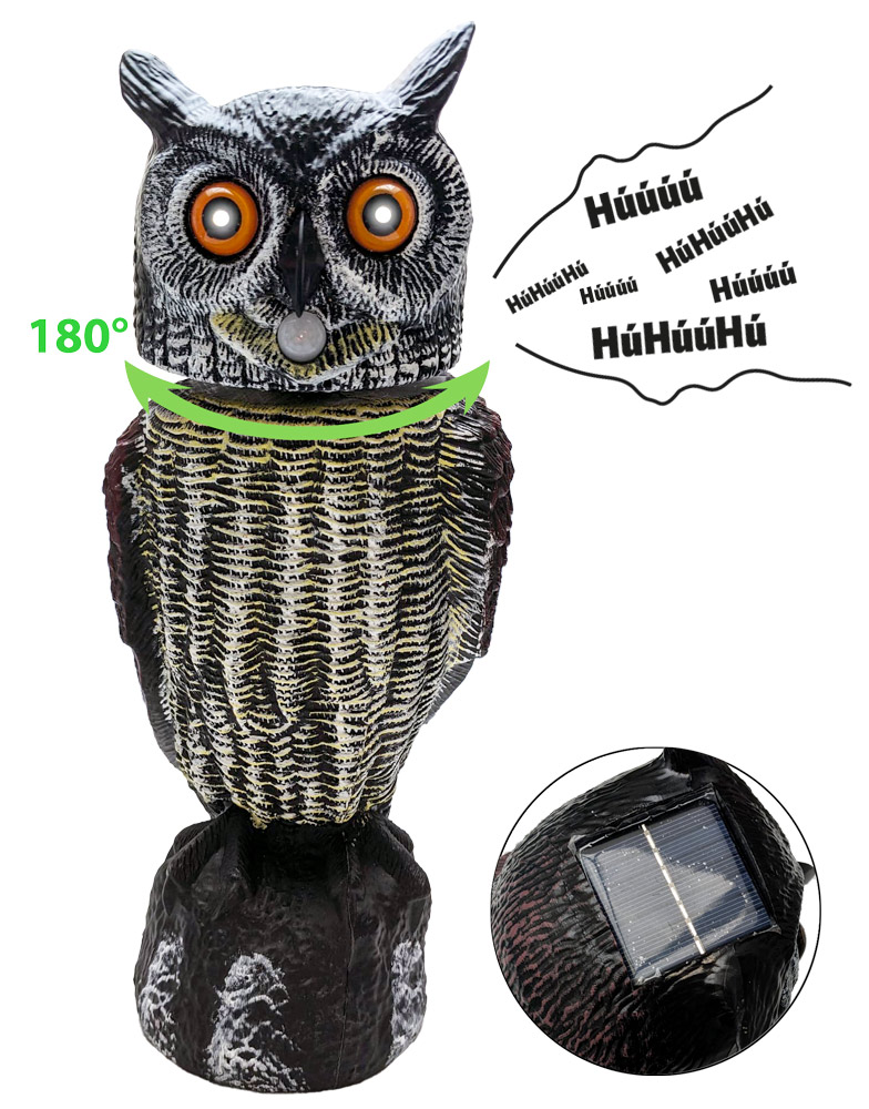 - realistický vzhled - detailní peří a živé barvy sovy věrně imitují skutečnou sovu, čímž odpuzují ptáky a zároveň zdobí vaši zahradu