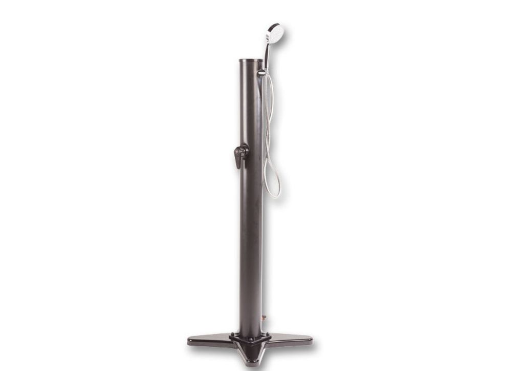 Solární sprchu Marimex UNO 10992002 nemusíte díky stabilní hvězdicové základně vůbec kotvit do země. Pozitivní je také její nízká hmotnost, díky které ji snadno přenesete či uklidíte. Mimo sezonu ani nepotřebuje moc místa pro uskladnění. Klasická sprchovací hlavice s hadicí umožňuje vychutnat si příjemné osvěžení stejné nebo ještě lepší než doma ve sprchovém koutě.