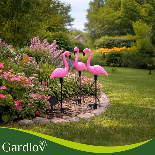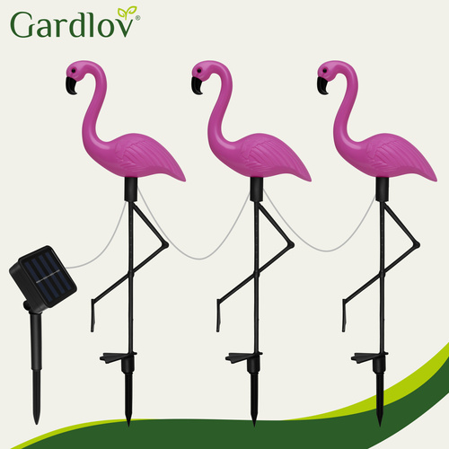 Sluneční plameňáci jsou typem osvětlení, které čerpá energii přímo ze slunce. Panel byl umístěn odděleně od figurek na 1 metr dlouhém kabelu. Během dne panel sbírá sluneční energii a ukládá ji do vestavěné baterie. Poté, po setmění, lampy využívají nahromaděnou energii ke svícení.