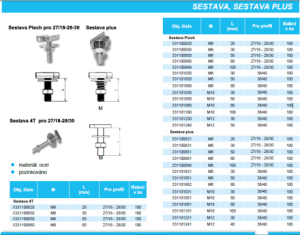 závit M12délka 30 mmpro profil 38/40materiál ocelpovrchová úprava pozinkovánoPARAMETRY:Typ upevnění: sestavaMateriál upevnění: ocelRozměr upevnění (DN ,M, mm,cm, m, ks,ml,", kg,°C): M12x30...