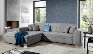 Dotaz na produkt Na splátky ještě dnesSorento je stylová, multifunkční rohová pohovka se stabilní konstrukcí ve tvaru L, která vám bude sloužit jako kus nábytku po mnoho let. Pohovka o rozměrech 295 x 195 x 80 cm se skvěle hodí nejen jako místo pro denní relaxaci, ale také jako centrální dekorace obývacího pokoje. Díky mechanismu typu delfín je rohová pohovka Sorento vhodná i pro noční odpočinek. Plocha na spaní o rozměrech 210 x 126 cm zajišťuje dlouhý spánek a plnou relaxaci. Maximální pohodlí zaručuje kombinace vlnité pružiny a pěny T30, ze které je vyroben sedák. Při výběru rohové pohovky Sorento stojí za zmínku její neobvyklý styl, a také: tvarované opěradlo, zaoblené područky a stylové prošívání, které jí dodávají charakter. Sorento je samo o sobě styl, pohodlí a elegance. Mít takový kus nábytku ve svém bytě se jistě vyplatí. Sorento je samo o sobě styl, pohodlí a elegance. Určitě se vyplatí mít takový kus nábytku ve svém bytě.Látky: Inari 91