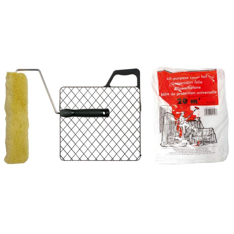• sada obsahuje: váleček s držákem, stírací mřížka, zakrývací fólii 4x5 m