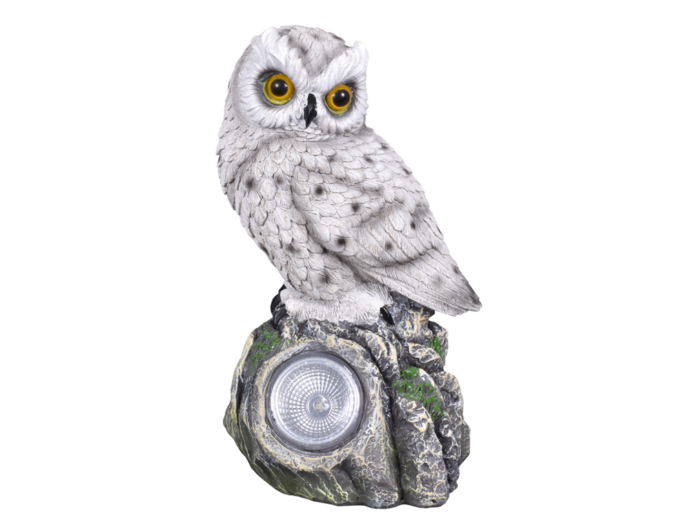 Dotaz na produktSolární dekorativní figurka sovy sedící na kameni je vyrobena z polyresinu s jemně modelovaným povrchem, který věrně zvýrazňuje strukturu peří i kamene a dodává celé dekoraci klidný, elegantní vzhled vhodný do zahrady, na terasu i ke vstupu do domu. V kameni je integrováno solární LED světlo, které se po setmění automaticky rozsvěcí a vytváří decentní světelný akcent kolem figurky. Celek spojuje dekorativní a orientační funkci v jednom kompaktním provedení. Napájení: solární. Rozměry: délka 15 cm, šířka 14 cm, výška 26 cm. Materiál: polyresin. Barva: bílá.